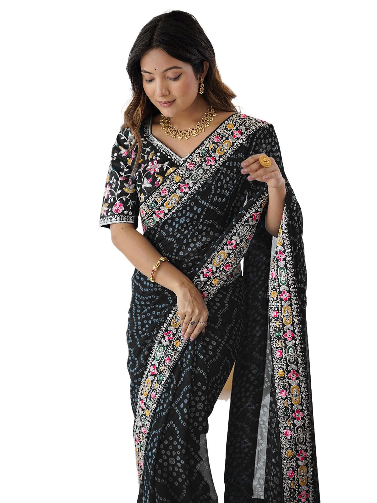 Buy Satrani Women’S Georgette Embroidery Bandhani Printed Saree With Unstitched Blouse Piece (4611S1042N_Rani Pink) at Amazon.in
