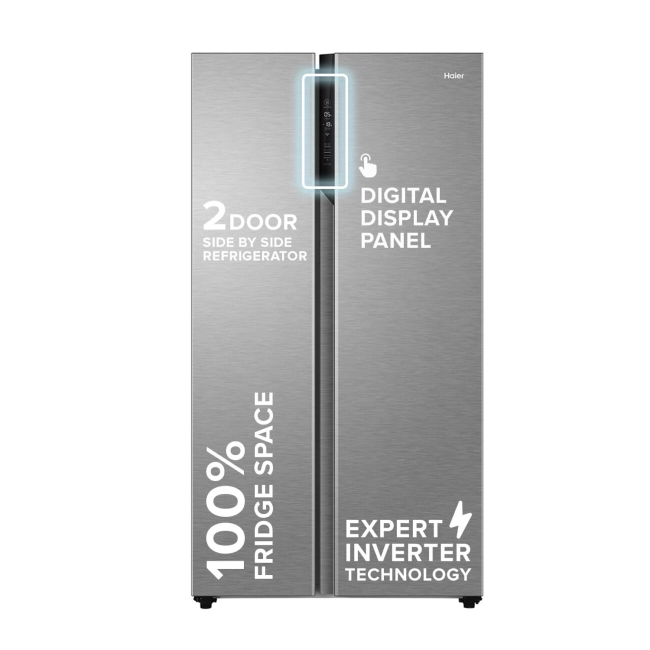 Haier 596L 3Star 2 Door Side by Side Frost Free Refrigerator|100% Convertible|Expert Inverter|Digital Display Panel|Twist Ice Tray|Deo Fresh Technology (HES-690SS, Shiny Silver)