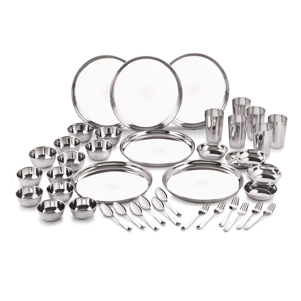Home ยป Neelam Stainless Steel 24 Gauge Premium 42 Pieces Dinner Set, Ideal Gifting Dinner Set, Ideal for Special Occasions Like Anniversary, Wedding, Housewarming Party, Dishwasher Safe, Silver